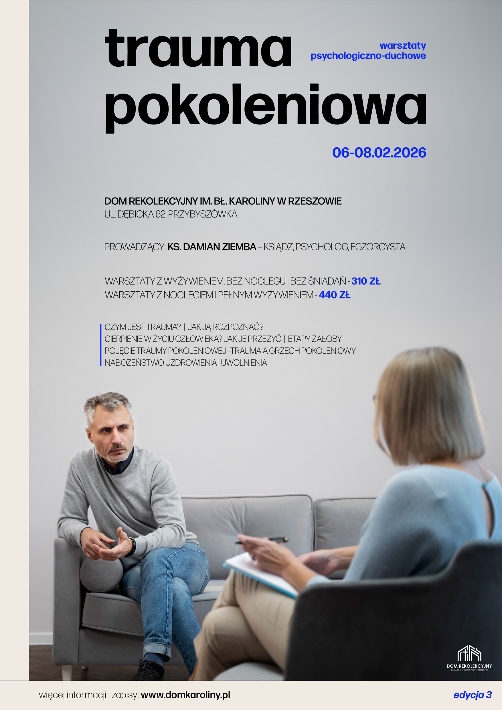 Razem, pod opieką doświadczonego specjalisty, ks. Damiana Ziemby – psychologa, księdza i egzorcysty, zgłębimy temat traumy dziedziczonej między pokoleniami. Poznasz mechanizmy przekazywania cierpienia i bólu oraz dowiesz się, jak skutecznie radzić sobie z ich wpływem na Twoje życie. będzie towarzyszyć nam także grupa modlitewna wspierająca nas od strony duchowej.
